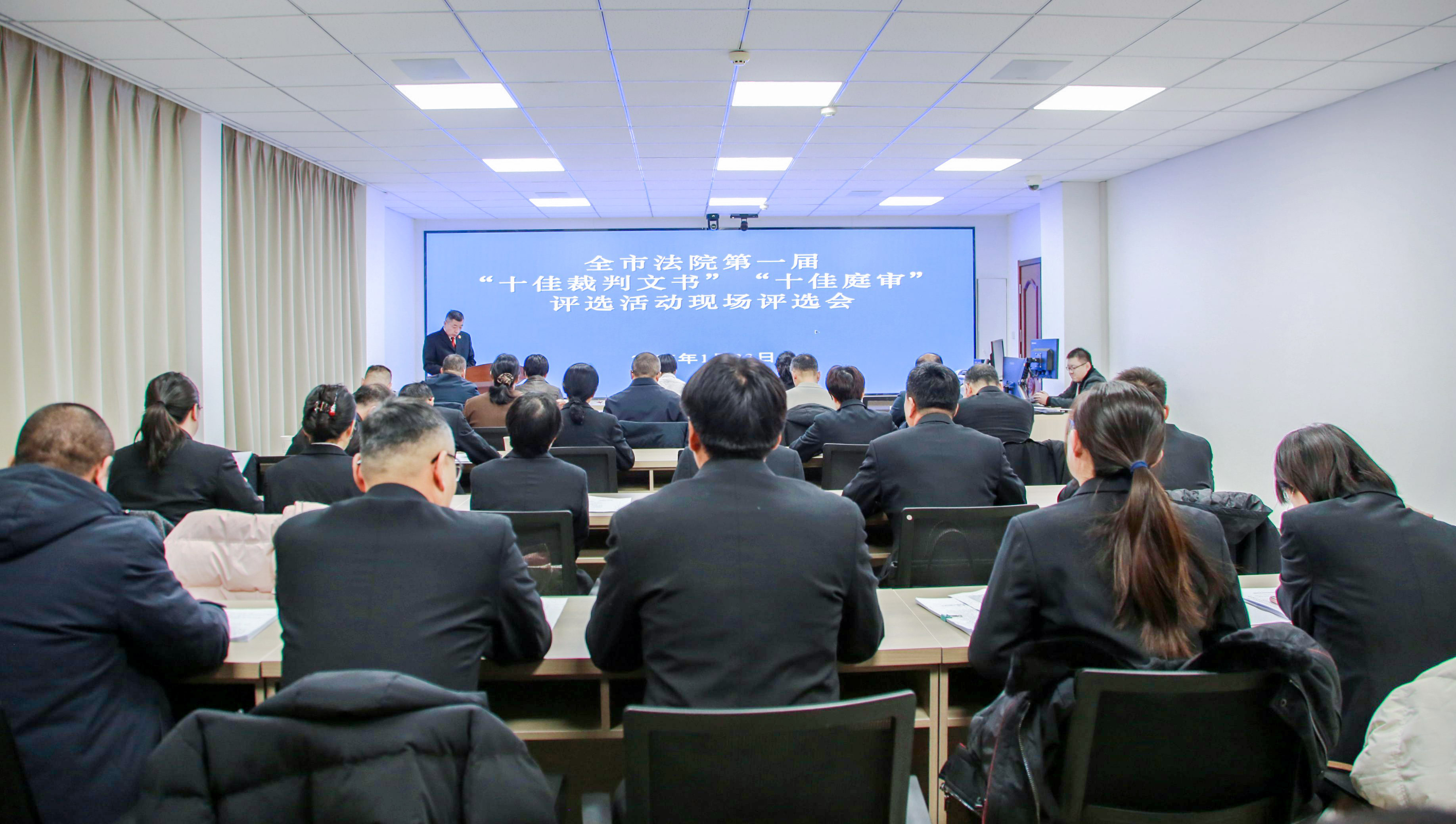 为确保评选的权威性与代表性,此次评审组成员涵盖自治区高级人民法院审判业务专家,吴忠市委政法委、市检察院、司法局等部门专业人士及市人大代表、政协委员、律师协会会员代表。评审组根据评审标准和互动情况,对每一篇裁判文书、每一场庭审进行了现场打分。